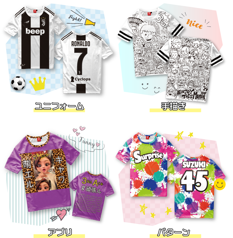 このようなデザインでも著作権者· 商標権者の許可を得ている場合のみプリントをお引き受けします。その際、許可の根拠となるメールなどの公的資料のご提示をお願いする場合がございます。なお、口頭での確認は 無効とさせていただいておりますので予めご了承ください。